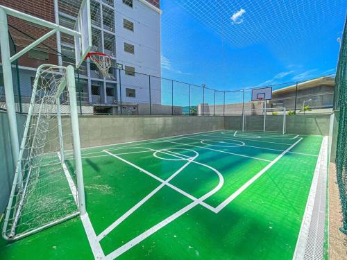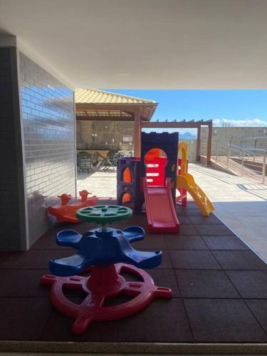 这家公寓提供桑拿房。Ap novo em frente a shopping center e próximo a praia配有儿童游乐场。客人还可以在阳光露台上放松身心。