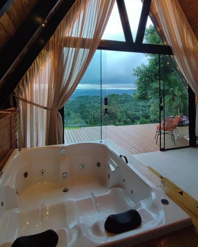 Cabana Pôr do Sol com hidro坐落于Vidal Ramos,配有spa浴缸。这家自助式山林小屋配有花园和免费私人停车位。
