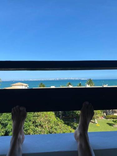 Flat aconchegante à beira-mar坐落于伊塔帕里卡岛维拉克鲁兹,距离马格兰德海滩(Mar Grande Beach)有4分钟步行路程,距离佩尼亚海滩(Penha Beach)有2.5公里,提供花园和空调。这家公寓配备免费私人停车位、24小时前台和免费WiFi。