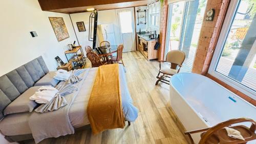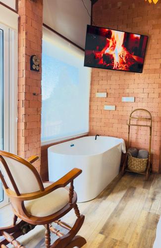 这家山林小屋配有平板电视。这家山林小屋提供毛巾和床上用品。