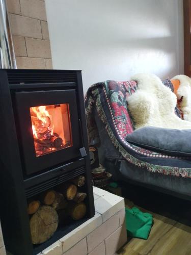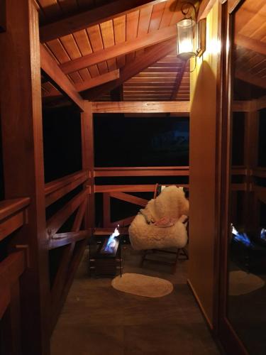 这家度假屋提供阳台,享有山景,配有1间卧室、起居室、平板电视、带烤箱和微波炉的设施齐全的小厨房以及1间带淋浴设施的浴室。1间浴室提供吹风机。