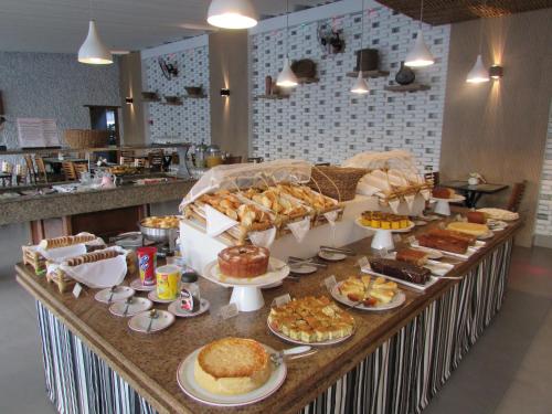Ubatuba Palace酒店的自助餐厅供应国际和巴西美食。泳池区的酒吧供应各种鸡尾酒和开胃菜。
