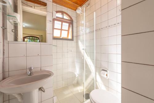 Chalés Four Seasons旅馆的客房提供瓷砖地板、电视、风扇或空调以及带淋浴的私人浴室。