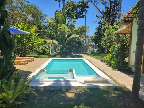 Suíte Caju享有花园景,配备户外游泳池、私家海滩和露台,距离四角广场约有2.7公里。这家自助式公寓配有私人泳池、花园、烧烤设施、免费WiFi和免费私人停车位。