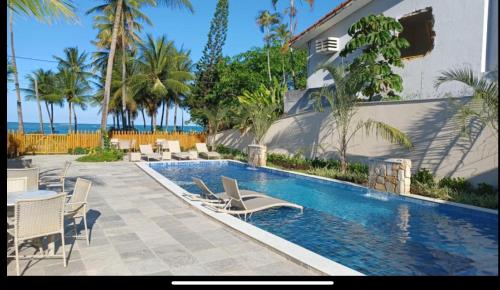 这家公寓配备室外泳池、私人海滩和花园。