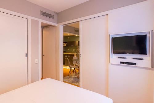 Apart-hotel c espaco home office c boa localizacao距离科潘大厦-奥斯卡尼迈耶科潘大厦有3.5公里,距离伊比拉布埃拉公园有3.8公里。圣保罗/孔戈尼亚斯机场距离住宿有9公里。