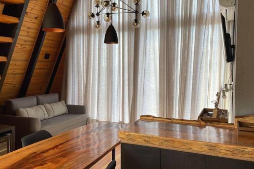 这家空调小木屋配有1间卧室、起居室、带冰箱和电热水壶的设施齐全的厨房以及1间带淋浴设施和热水浴池的浴室。1间浴室配有浴缸,也为客人提供拖鞋,提供毛巾和床上用品。