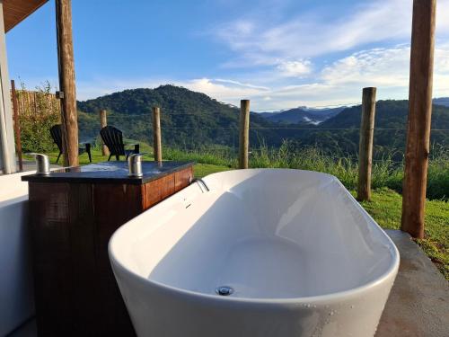 Embahu Suítes - Vista para Pedra do Baú e banheira de imersão提供热水浴池。这家宾馆的客人可以在圣安东尼奥-杜皮尼亚尔及周边地区体验各种活动,如徒步。