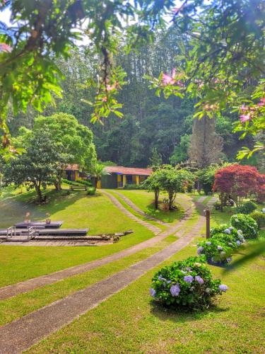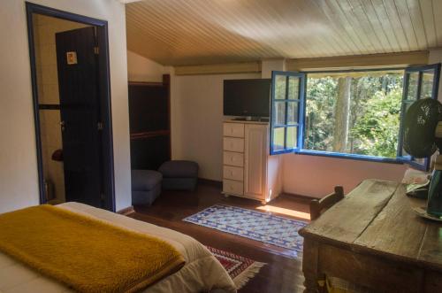 Pousada A Casa da Fazenda坐落于圣安东尼奥-杜皮尼亚尔,距离Horto Florestal Park有49公里,配备户外游泳池、免费私人停车位和花园。这家住宿提供的设施包括共用厨房、客房服务以及免费WiFi。这家住宿的部分房间拥有山景阳台。