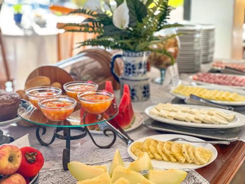 客人每天早晨可以在早餐室享用自助早餐,包含各种新鲜水果、面包、肉食冷盘以及冷热饮品。