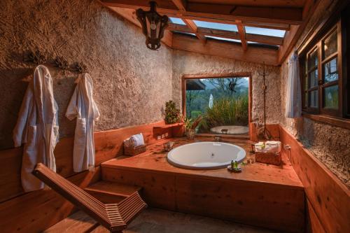 小木屋设有宽敞的露台和室内及室外休息区,并提供壁炉、卫星电视、迷你吧以及带吹风机的浴室。酒店可安排客房服务。