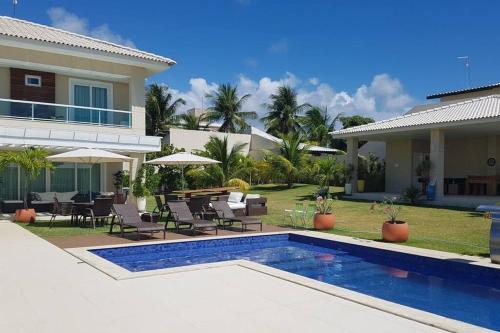 CASA DE PRAIA COM 05 SUITES- PARAÍSO A 8 min Do MAR坐落于巴伊亚州的萨尔瓦多,拥有庭院。这家度假屋享有花园景,配有花园和私人泳池,也配有免费WiFi。