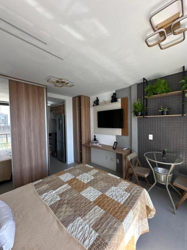 Studio, Barra Conceito坐落于萨尔瓦多,享有花园景,配有空调客房、私人泳池和阳台。这家公寓距离法罗达巴拉海滩(Praia do Farol da Barra)有不到6分钟步行路程,距离巴拉海滩有不到一公里,提供免费WiFi。