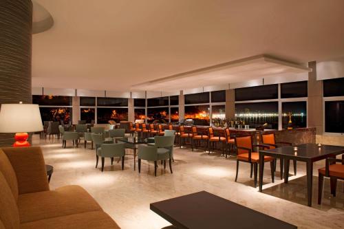 Sheraton Grand Rio酒店的Casarão Restaurant餐厅位于泳池区,拥有休闲典雅的氛围,在晚餐时段供应高级肉类美食,午餐时段则供应自助餐。客人也可在Bene Restaurant餐厅享用意大利美食,或光顾最新的Dry Martini Bar现代创意酒吧。