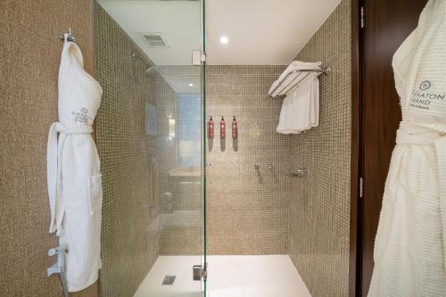 Sheraton Grand Rio酒店的宽敞奢华客房经过了整修,拥有现代化装饰与现代陈设,配有空调和带迷人海滩景致的私人阳台。