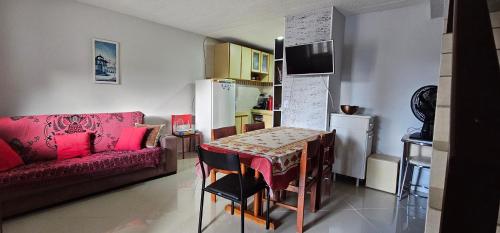 Residencial Hannah - Casa 6 - Porto Belo SC - Bairro Perequê享有山景,提供露台和阳台,距离佩雷克海滩(Pereque Beach)约有8分钟步行路程。这家自助式度假屋拥有花园、烧烤设施、免费WiFi和免费私人停车位。