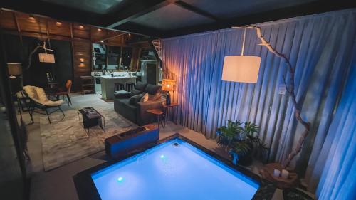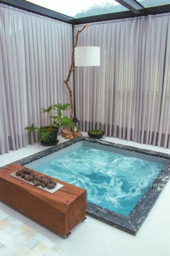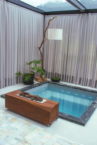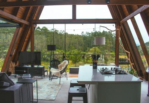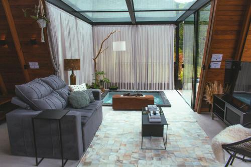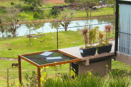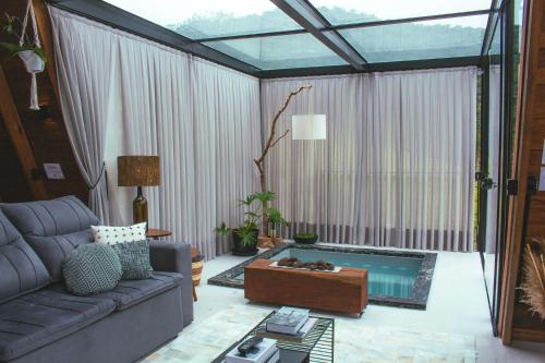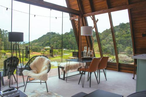 D'Alma Chalé享有花园景,配备共用休息室和阳台,距离布鲁梅瑙巴士站约有20公里。这家自助式小木屋配有私人泳池、花园、烧烤设施、免费WiFi和免费私人停车位。