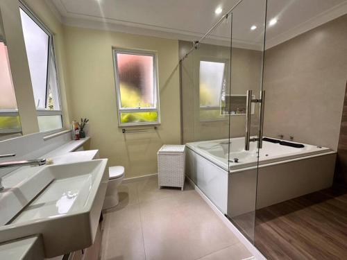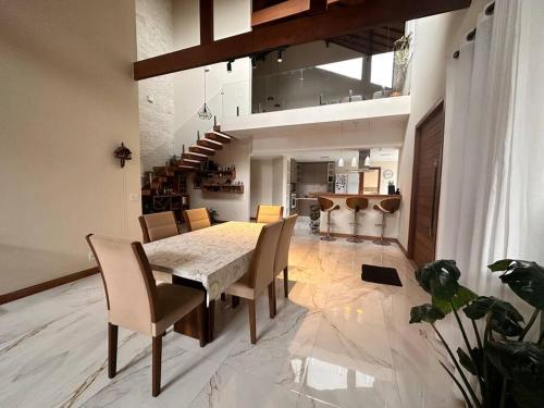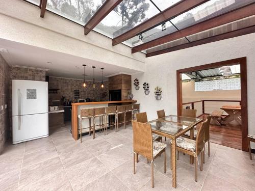 客人在这家度假屋入住期间可以使用Spa和康体设施,包括桑拿房和热水浴池。Luxo e conforto a 15 minutos do centro de Petrópolis com arrumadeira配备露台供客人使用。