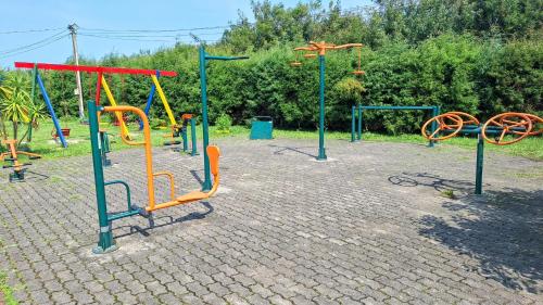 这家空调公寓配有2间卧室、起居室、带冰箱和电热水壶的设施齐全的厨房以及1间带淋浴设施的浴室。这家公寓也配有休息区和1间浴室。