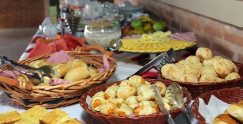 Pousada Faruk旅馆每天早晨在早餐室供应自助早餐,餐点包括各种新鲜水果、面包、冷肉以及多种热饮和冷饮。