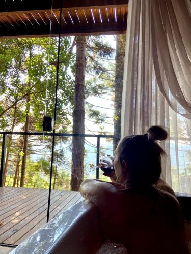 Cabanas da Mata Com Vista para as Montanhas na Serra Gaúcha坐落于新彼得罗波利斯,距离伊米格兰特山谷公园有7.8公里,距离Black Lake Gramado有40公里。客人可以在周边地区体验徒步。这家住宿距离鲜花广场有7.2公里,配备花园和免费私人停车位。