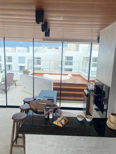 这家公寓提供热水浴池。Condomínio na praia em Nísia Floresta - Tabatinga - Natal/RN配备露台供客人使用。