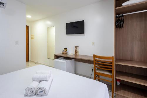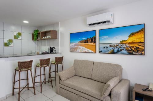 所有客房均配有有线电视、迷你吧、办公桌和木质家具,并享有纳塔尔市(Natal)的全景以及现代装饰。