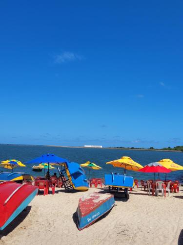 Flat da Praia Natal位于纳塔尔,距离蓬内格拉海滩(Ponta Negra Beach)有2分钟步行路程,距离沿海之路海滩(Via Costeira Beach)有300米,提供免费WiFi和空调。客人可以使用带露台的花园。内部提供私人停车位。