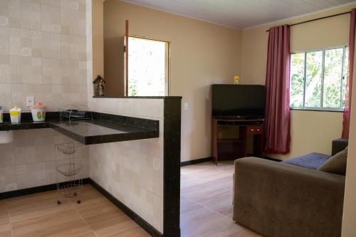 Sitio encantador e tranquilo com churrasq e Wi-fi坐落于弗洛里亚努元帅镇,配备私人泳池和免费WiFi。这家度假屋提供带阳台的客房。