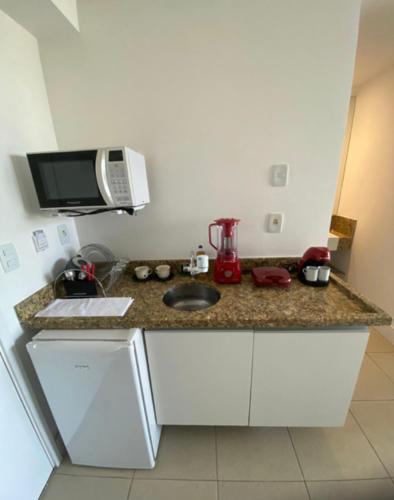 Macaé Ramada Flat RJ位于里约热内卢州的马卡埃,靠近因贝蒂巴海滩(Imbetiba Beach)和Municipal Theather,提供免费WiFi和免费私人停车位。客人可以使用桑拿浴室。
