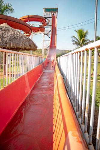 Hotel Thermas Bonsucesso is located in Jatai. Offering a water park complex with 7 swimming pools, a wet bar, 2 restaurants and sports courts, this farm stay has several entertainment options available, including horse riding and water sports by the lake.