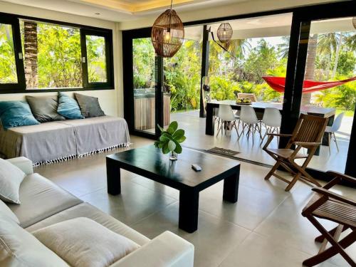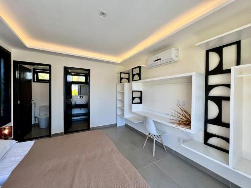这家空调别墅配有4间卧室、起居室、带冰箱和咖啡机的设施齐全的厨房以及4间带淋浴设施的浴室。这家别墅也为客人提供休息区和4间浴室。