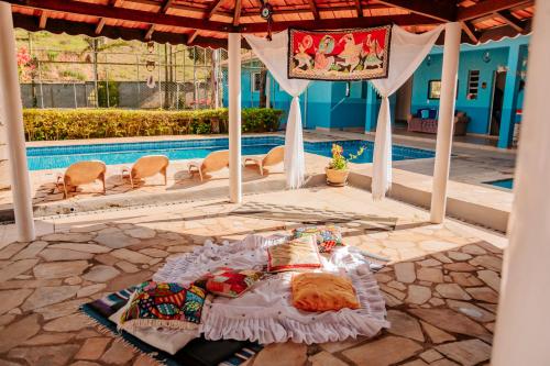Pousada Vilarejo de Minas坐落于伊塔佩瓦,距离维莱德购物中心有36公里,配备户外游泳池、免费私人停车位、花园和烧烤设施。这家住宿提供的设施包括客房服务、24小时前台以及免费WiFi。这家住宿的部分房间拥有湖景阳台。