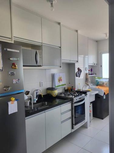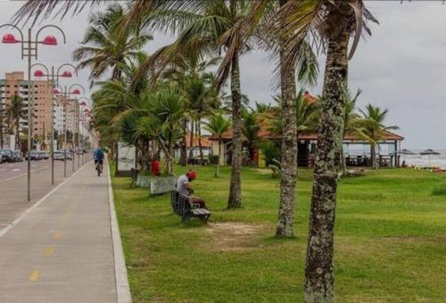 Apto. a 40m da praia - Itanhaém.位于伊塔尼亚恩,距离普莱亚奥海滩(Praiao)仅有几步路,提供露台、室外泳池、免费WiFi和24小时前台。这家住宿提供私人泳池和免费私人停车位。