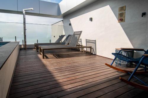 Apt moderno a uma quadra da Praia Brava VT4055坐落于伊达贾伊,提供私人泳池和庭院,享有海景。这家住宿距离布拉瓦海滩(Brava Beach)有2分钟步行路程,为客人提供免费WiFi,内部提供私人停车位。