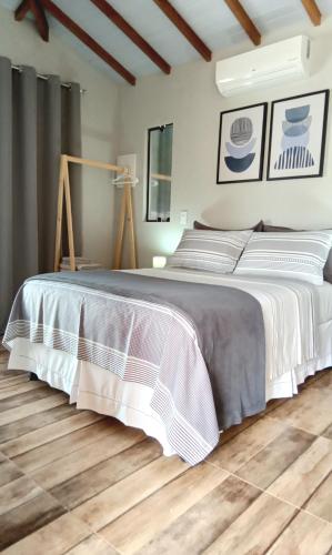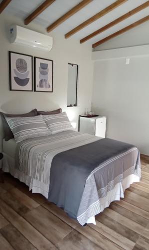 这家旅馆的每间客房都配有空调、衣柜、平板电视、私人浴室、床上用品、毛巾和花园景露台。Suíte Ilhinha II em condomínio na Praia do Perequê的所有客房都配有休息区。