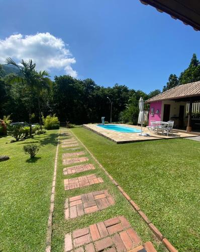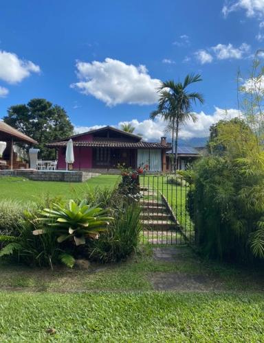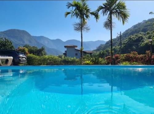 Casa rosa de Guapimirim享有山景,提供户外游泳池和阳台,距离巴士总站约有23公里。这家自助式度假屋配有私人泳池、花园和免费私人停车位。