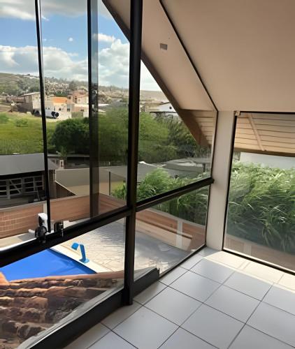 Casa com piscina aquecida位于格拉瓦塔,距离Alto do Cruzeiro仅有13分钟步行路程,提供花园、共用休息室、露台和免费WiFi。这家度假屋还配有私人泳池。