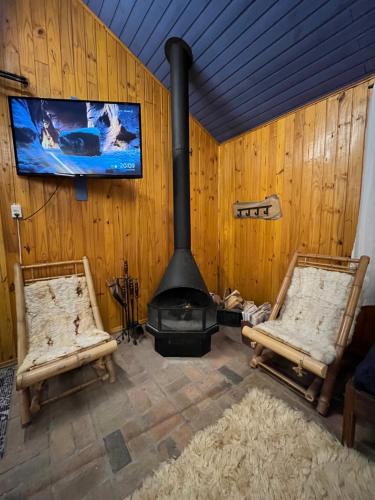 这家小木屋配有1间卧室、起居室、带冰箱和电热水壶的设施齐全的厨房以及1间带淋浴设施和免费洗浴用品的浴室。这家小木屋还提供休息区、洗衣机以及1间带吹风机的浴室。