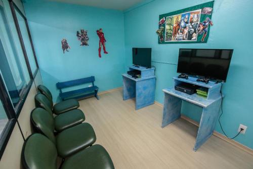 这家宾馆的所有房间均配有休息区、带有线频道的平板电视、厨房、用餐区以及带吹风机和淋浴设施的私人浴室。FLAT - Residencial Pousada do Serrano的所有客房都配备床上用品和毛巾。