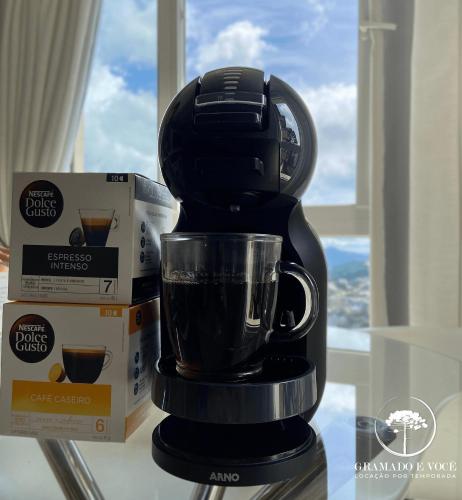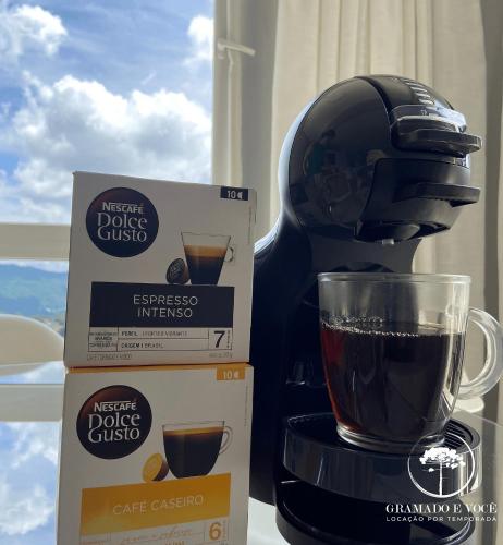 Apt Novo Moderno e Completo! 250 mt rua coberta no centro de Gramado!位于格拉玛多,地处中心地区,提供免费WiFi、空调以及冰箱和咖啡机等家用设施,靠近Saint Peter's Church和Festivals Palace。这家公寓配备花园和餐厅。
