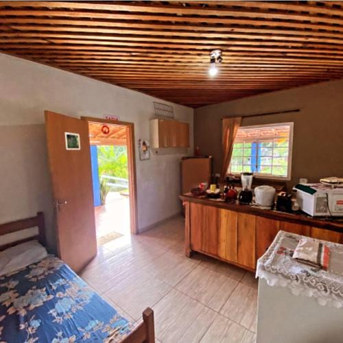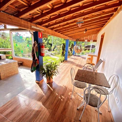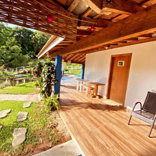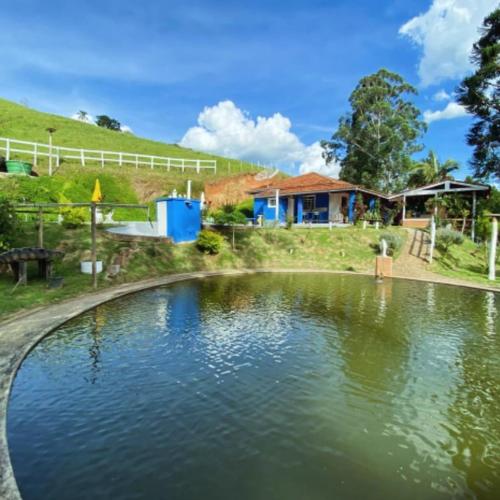 Estalagem Sitio Colibri坐落于圣保罗州的库尼亚,配有阳台,享有河景。这家度假屋享有池景,配有花园和私人泳池,也配备免费WiFi。