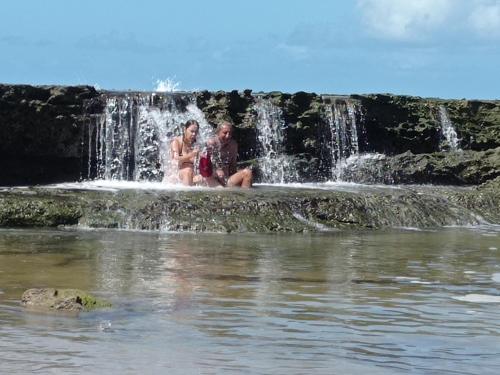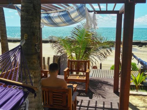 Vila Bello Pontal坐落于科鲁里皮,距离蓬塔尔杜科鲁里佩海滩(Pontal do Coruripe Beach)有几步路,配备户外游泳池、免费私人停车位、花园和共用休息室。这家住宿提供的设施包括共用厨房、行李寄存处以及免费WiFi。这家住宿的部分房间配有海景庭院。