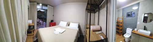 Pousada Vilas Boas - Suíte Casal 1位于卡瓦坎特,提供带免费WiFi的山景客房,配备花园和露台。这家住宿享有花园景,配备阳台。