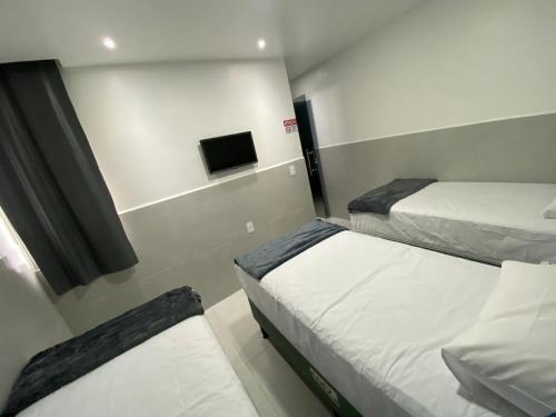 Suíte com banheiro privativo em Pousada recém construída,a 500mts do pátio do forró位于卡鲁阿鲁,配备住宿。酒店拥有家庭间。