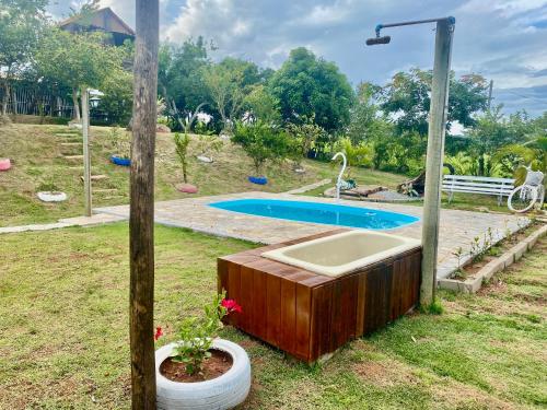 Recanto da Represa Carrancas坐落于米纳斯吉拉斯州的卡兰卡斯,配有阳台,享有湖景。这家自助式度假屋拥有私人泳池、花园、烧烤设施、免费WiFi和免费私人停车位。
