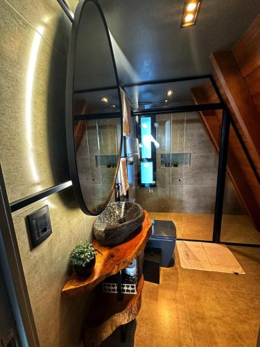 Alpinada Cabanas坐落于卡洛斯-巴尔博萨,距离玛丽亚富马卡火车站有26公里,距离Matriz Square有31公里,配备空调住宿。客人可以使用带露台的花园。内部提供私人停车位。
