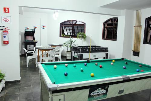 客人可在公寓打台球。 Farol das Gaivotas Pousada e Residence公寓距离卡拉瓜塔图巴汽车站(Caraguatatuba)的巴士站有4.3公里,距离马萨瓜库海滩(Massaguacu Beach)有7公里。
