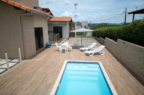 Casa com piscina vista para lago, 03 quartos confortáveis享有山景,配备庭院,距离福尔纳斯峡谷约有22公里。这家自助式度假屋配有私人泳池、花园、烧烤设施、免费WiFi和免费私人停车位。