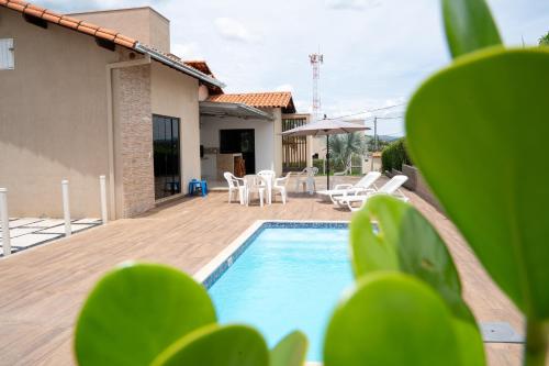 Casa com piscina vista para lago, 03 quartos confortáveis